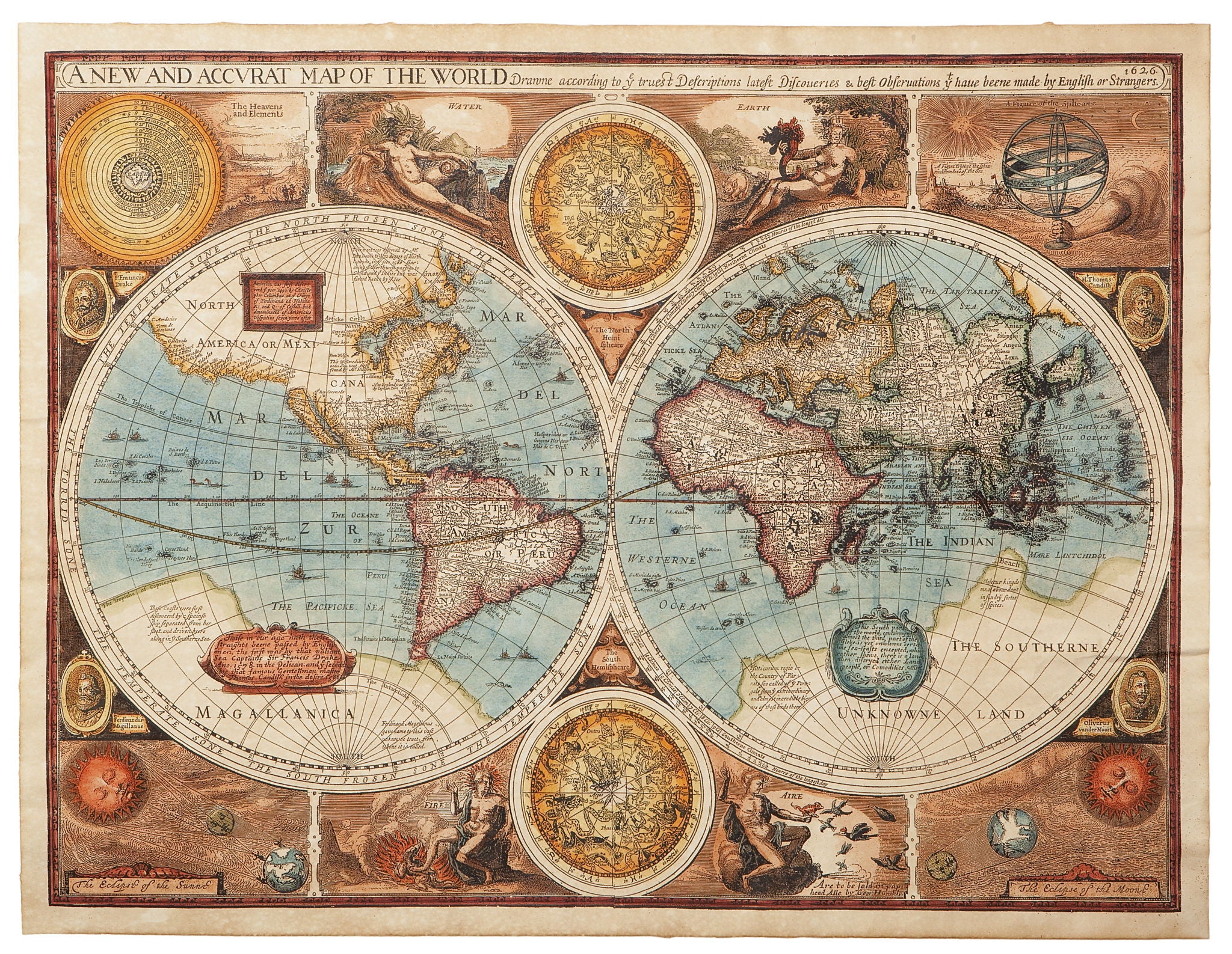 34x44 Framed Small - World Map - Light Brown