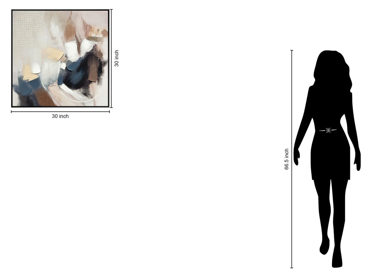 "Abstract Harmony I" Hand-Embellished Canvas In Frame - Brown / Blue / Beige / White / Black