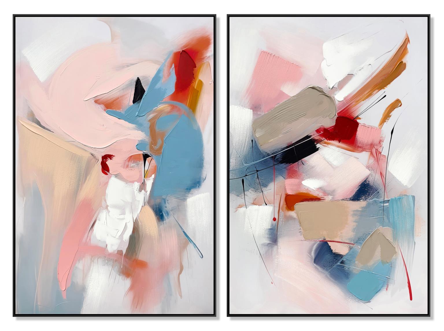 Abstract Pinks And Blues (Set of 2) - White