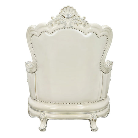 Adara - Chair With 2 Pillows - Pearl White Synthetic Leather & Antique White