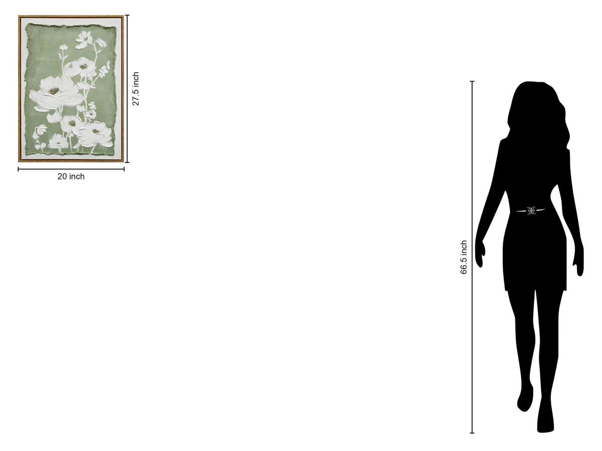"Blossom Serenity II" Hand-Embellished Canvas In Frame - Green / White / Natural Wood