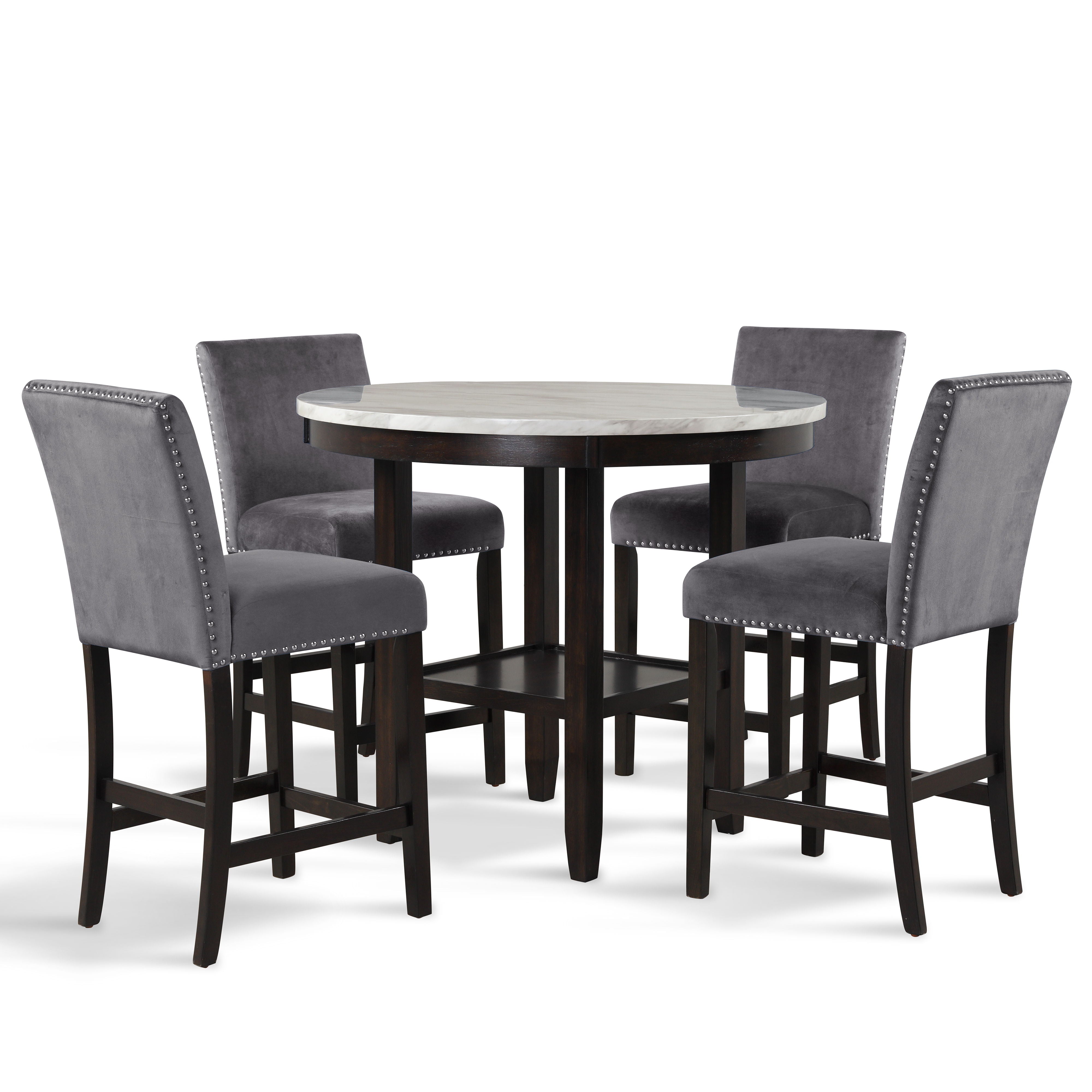 Celeste - Round Counter Table With 4 Chairs - Black / Gray