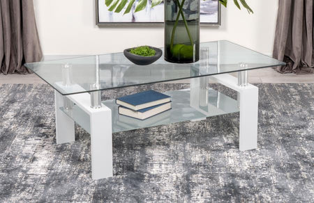 Dyer - 1-Shelf Rectangular Glass Top Coffee Table - White