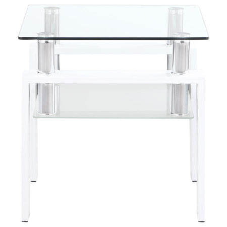 Dyer - 1-Shelf Square Glass Top Side End Table - White