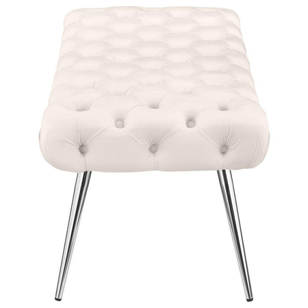 Ella - Upholstered Tufted Bench Stainless Steel Legs Ivory