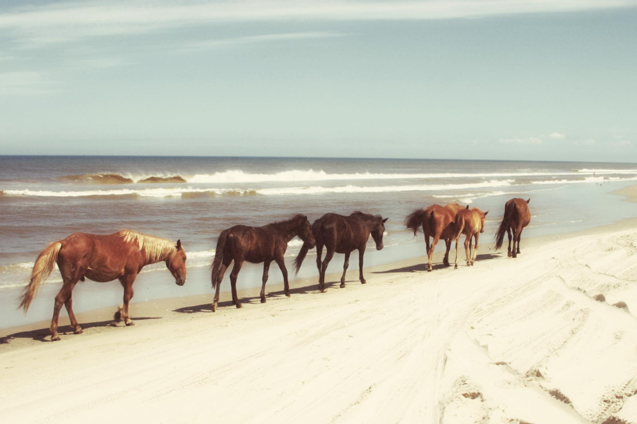 Framed Small - Horses On The Beach By Kathy Mansfield - Light Blue