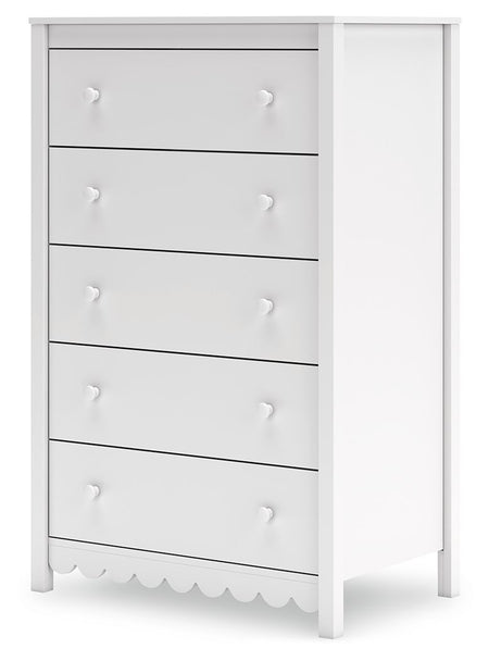 Cómoda de cinco cajones Hallityn, color blanco