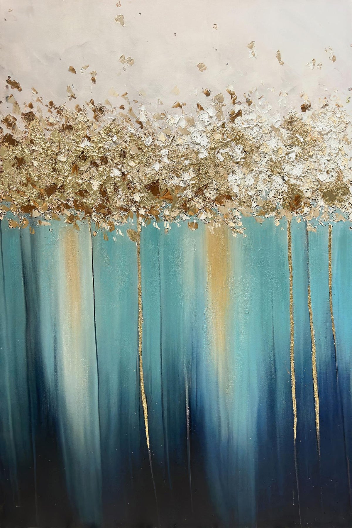 Hand Painted Textured Canvas - Blue / Golden