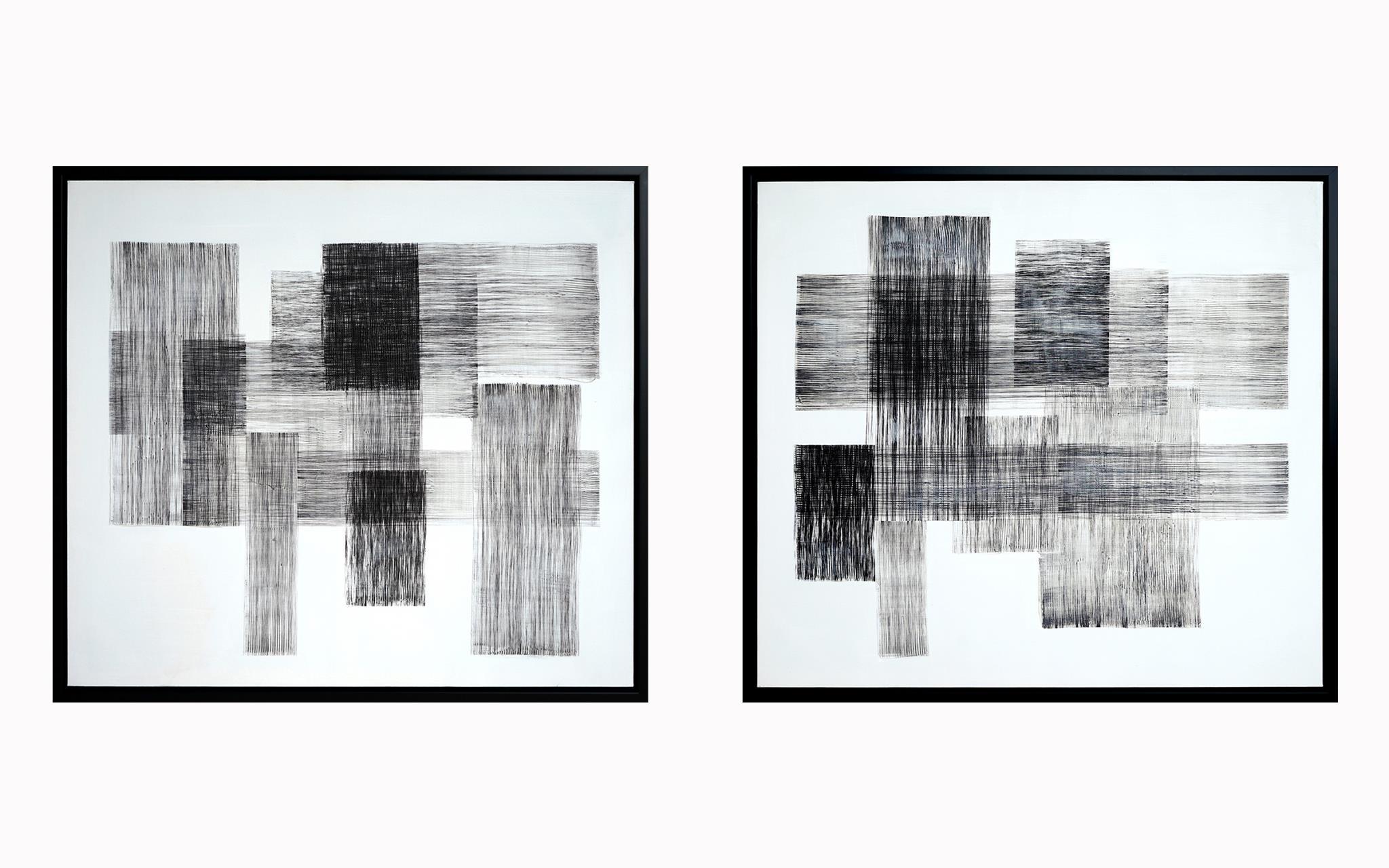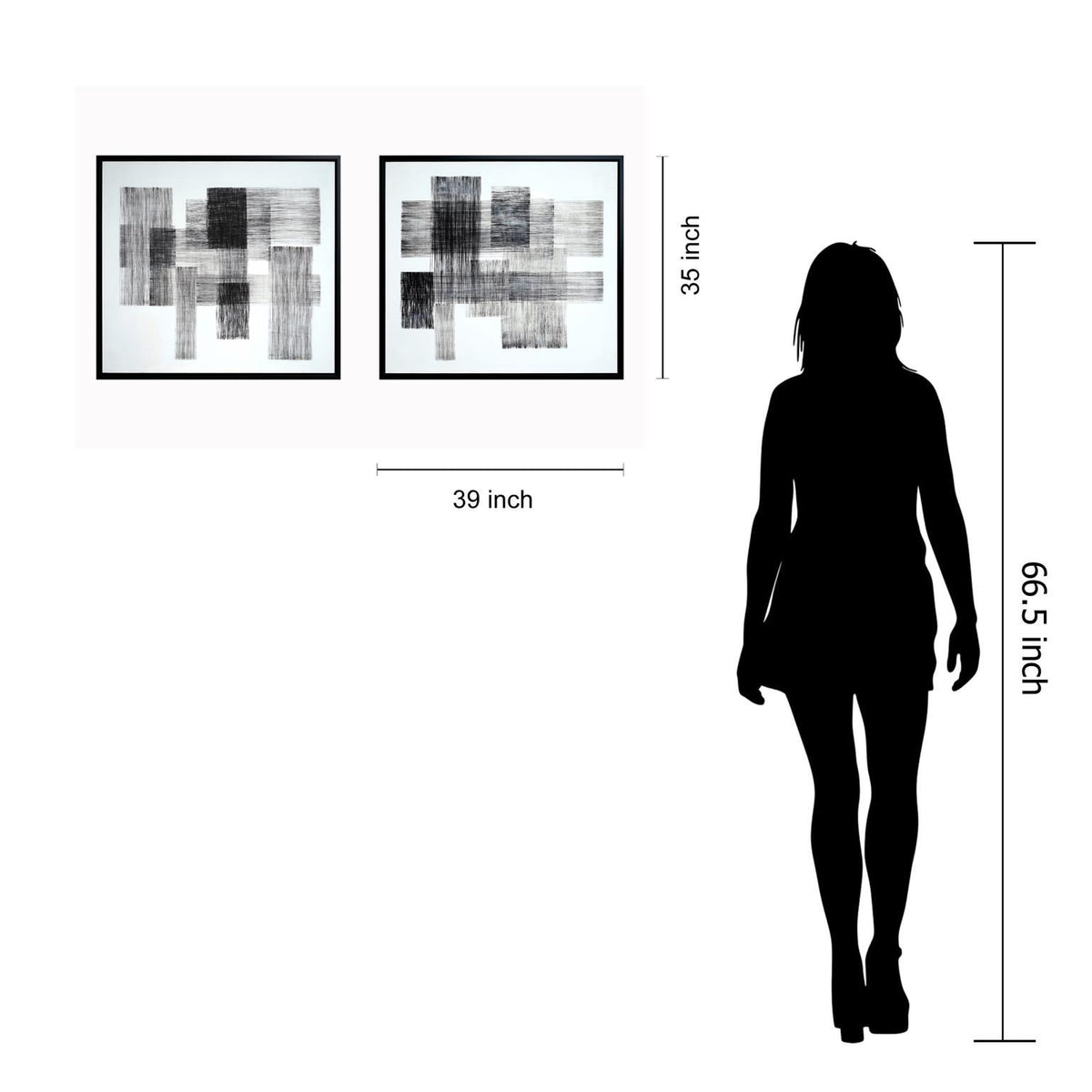 Hand Painted Textured Canvas in Frame 78x35 (Set of 2) - Dark Gray