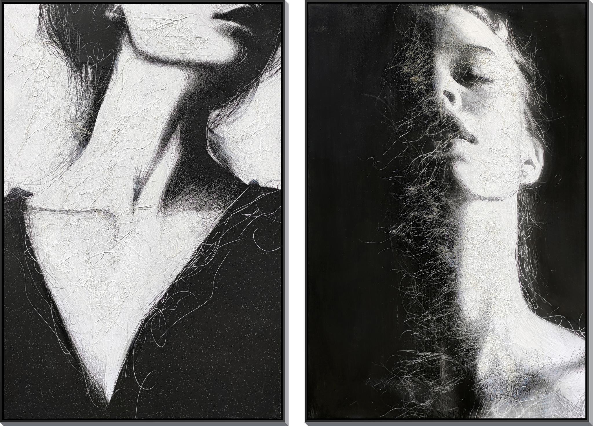 Hand Painted Textured Canvas In Frame (Set of 2) - Black