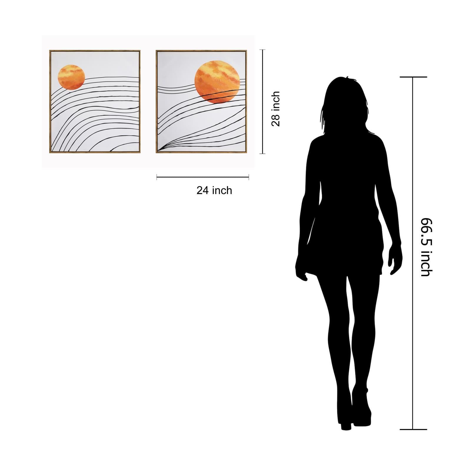 Hand Painted Textured Canvas in Frame (Set of 2) - Orange