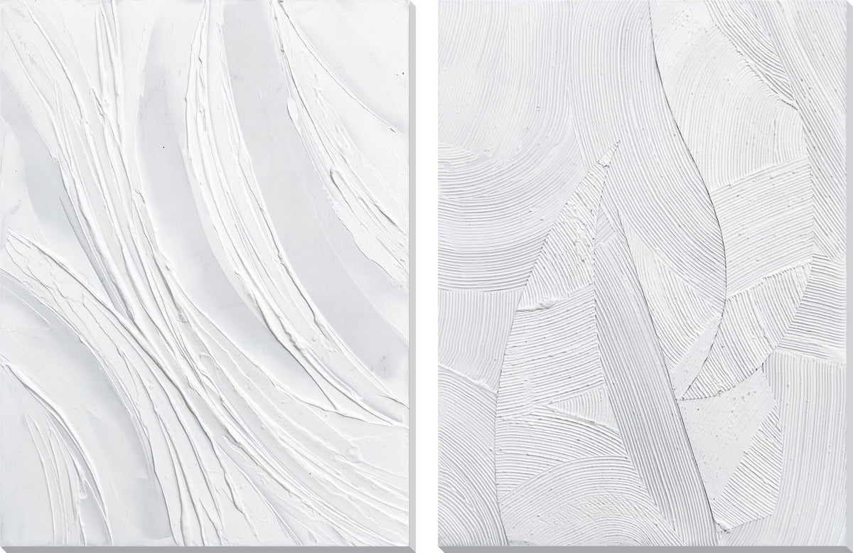 Hand Painted Textured Canvas (Set of 2) - White