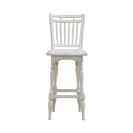 Magnolia Manor - Spindle Back Swivel Bar Stool - Antique White & Weathered Bark