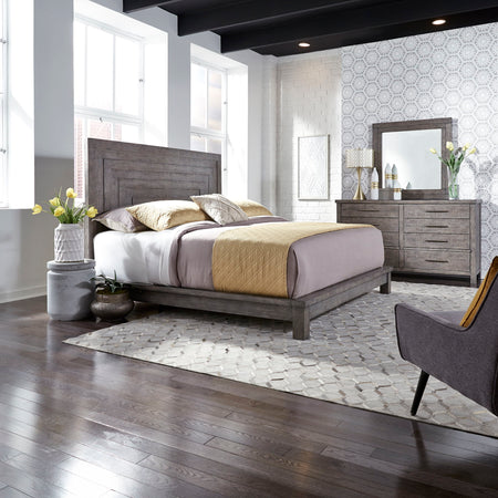 Modern Farmhouse - 3 Piece Bedroom Set (King Platform Bed, Dresser & Mirror) - Gray