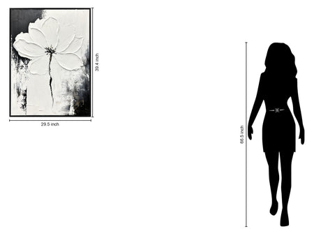 "Monochrome Blossom" Hand-Painted Canvas In Frame - Black / White