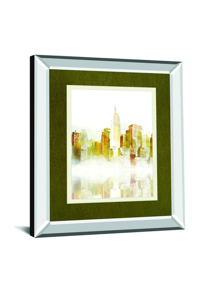 New York Sketch By Ken Roko Mirrored Frame - Yellow