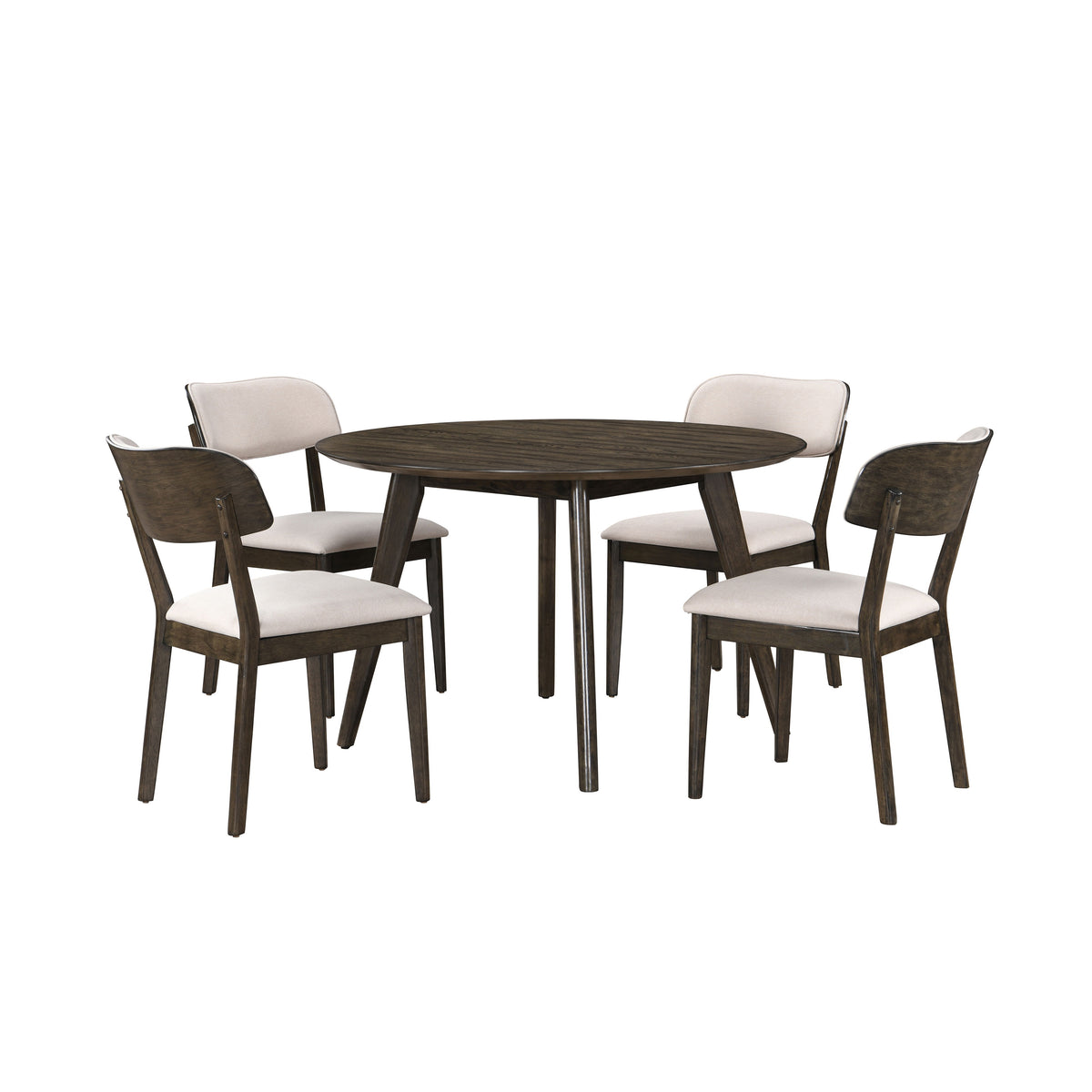 Rex - 48" Round Dining Table & 4 Open Back Chairs - Dark Brown
