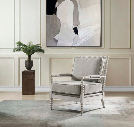 Saraid - Accent Chair - Beige Linen & Gray Oak