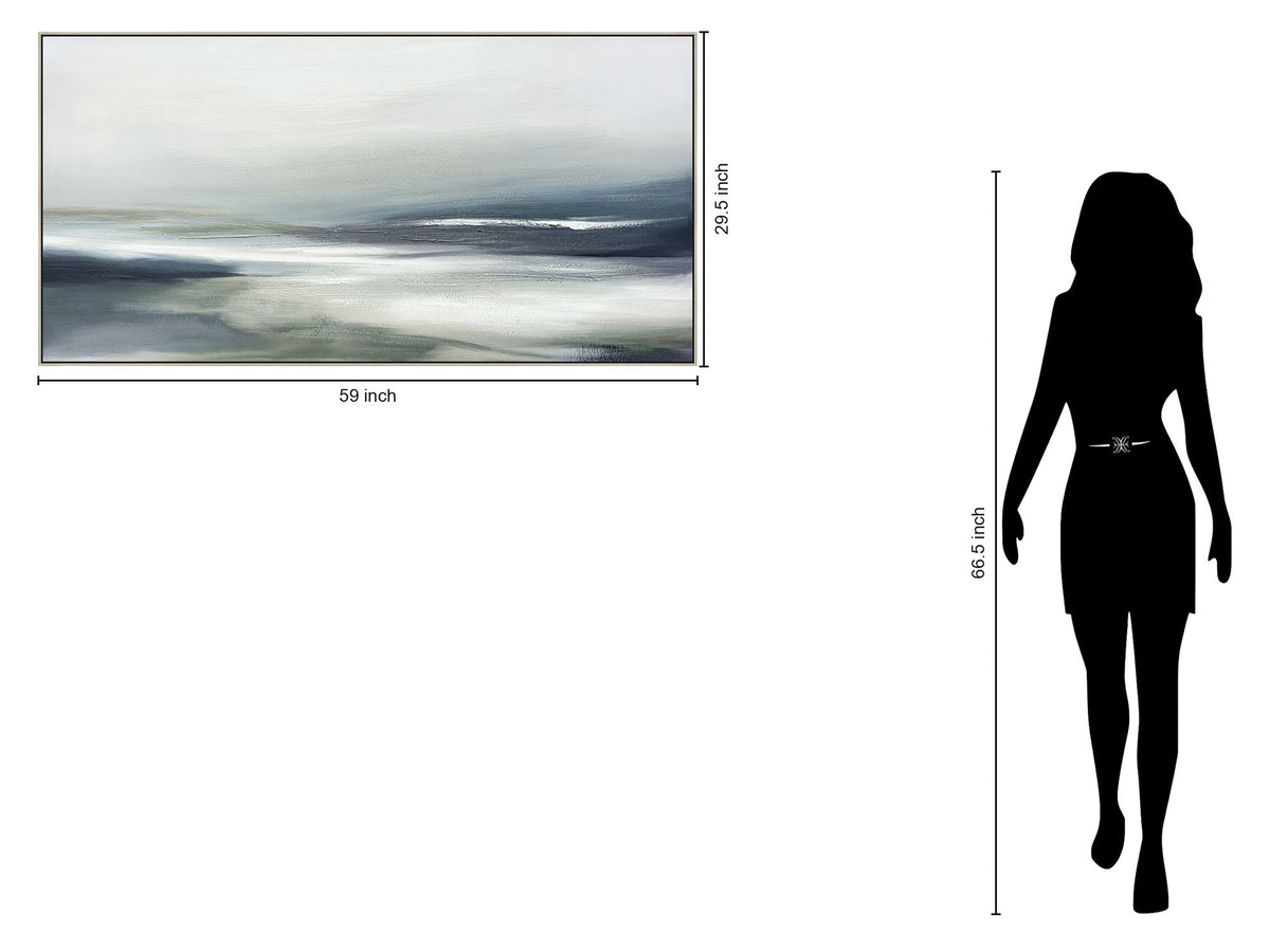"Serene Horizon" Hand-Embellished Canvas In Frame - Blue / Gray