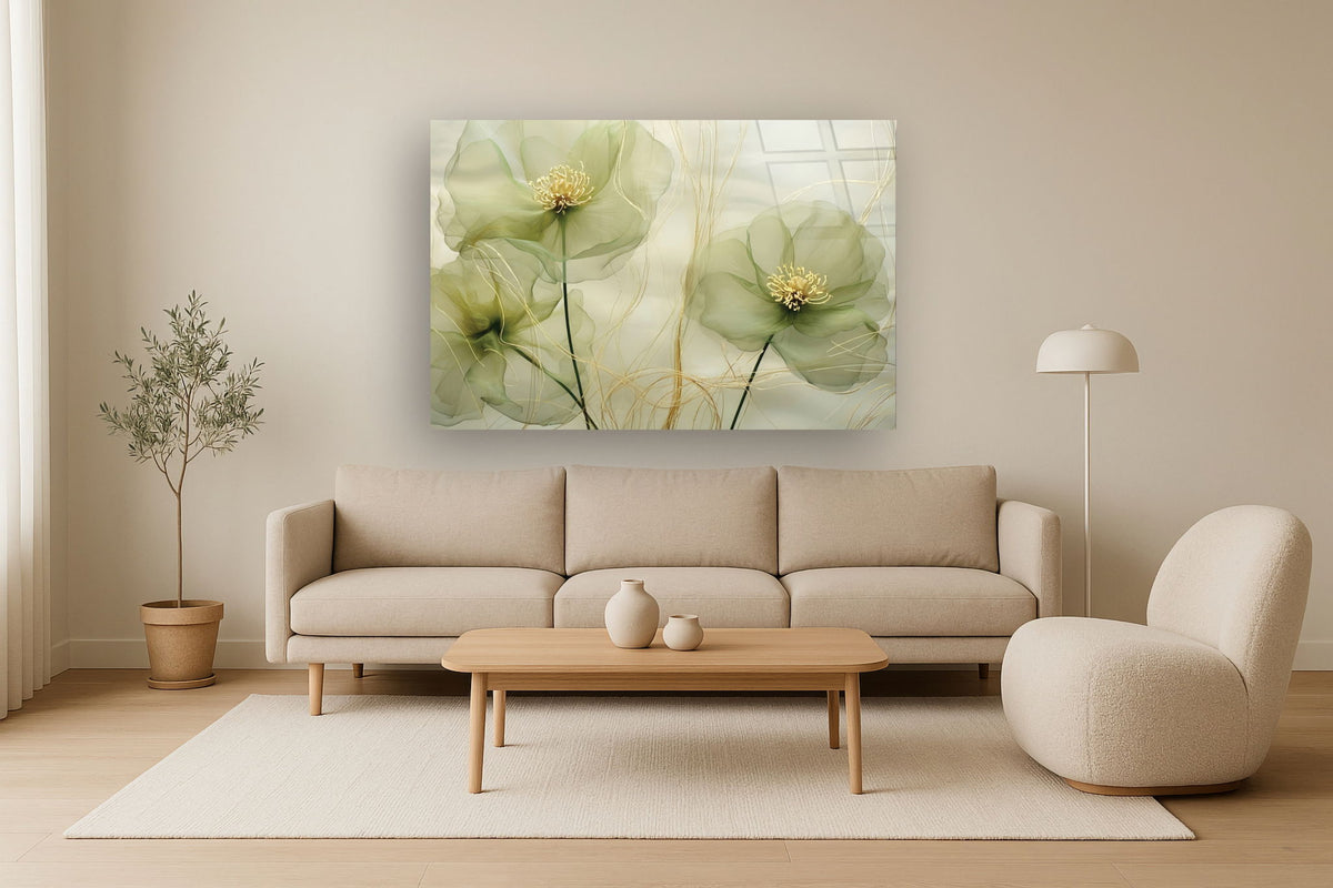Temp Glass With Foil - Green Whispy Floral - Green