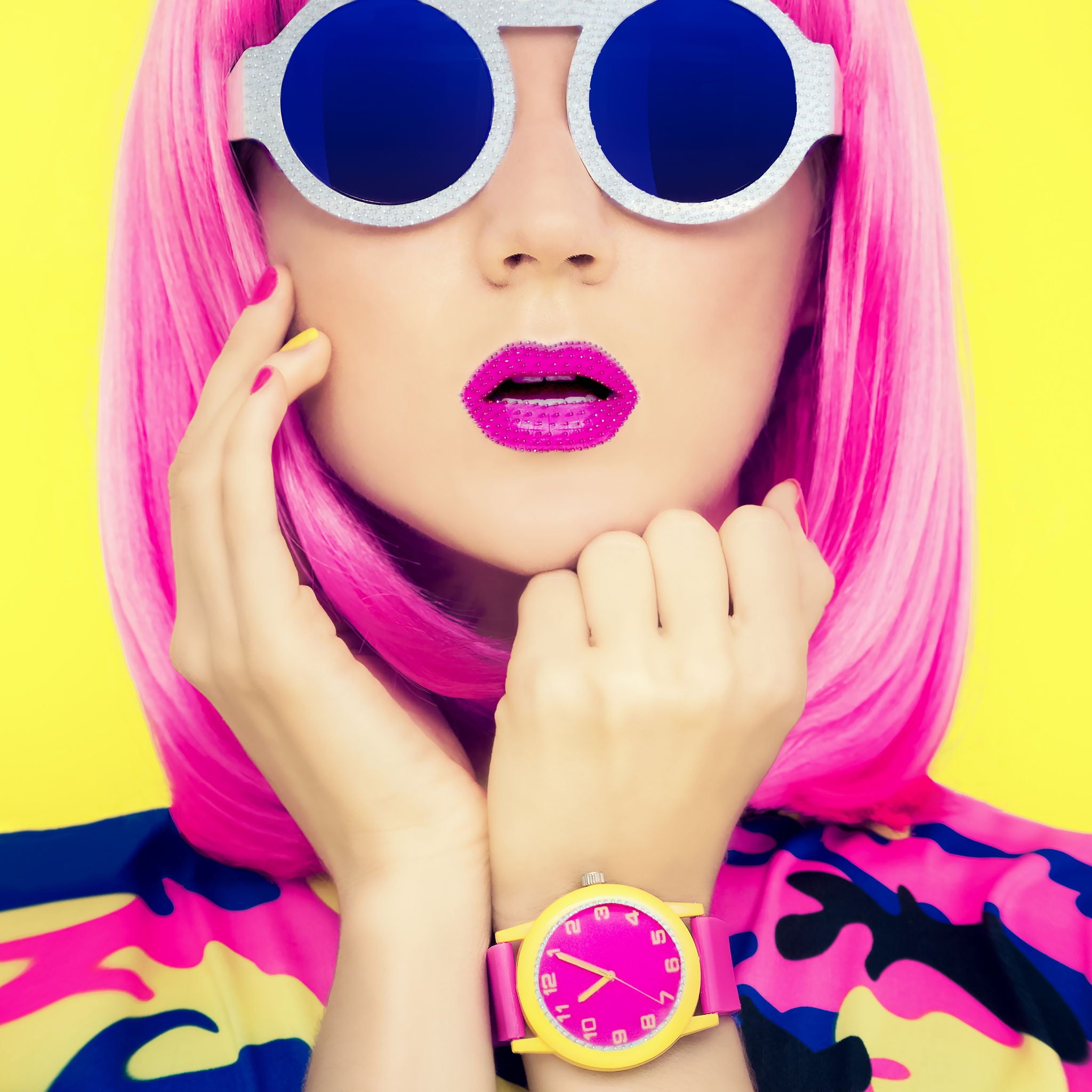 Tempered Glass With Foil & Rhinestones - Pink Katy - Pink