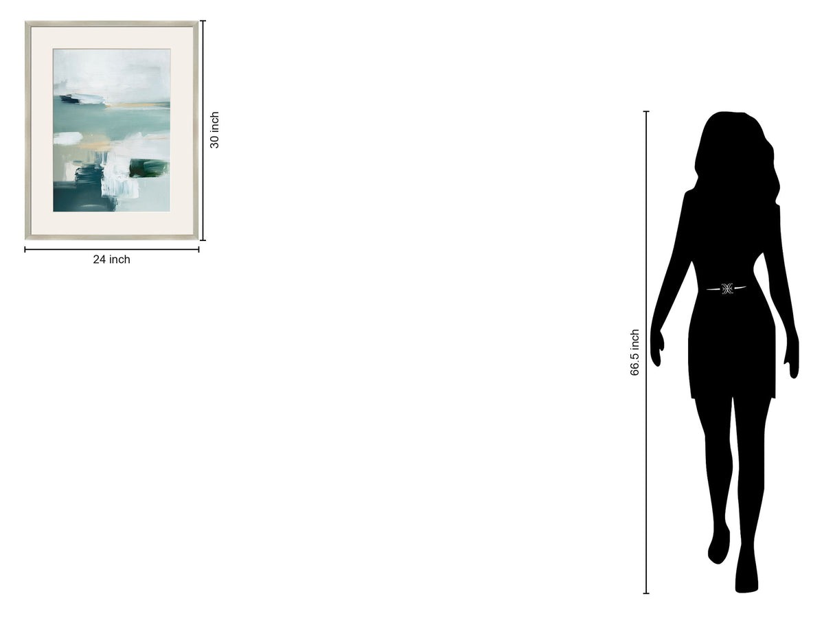 "Tranquil Horizons I" Framed Canvas Under Acrylic - Aqua / Cream
