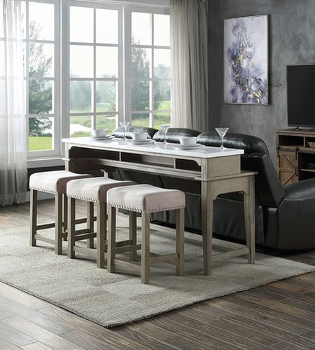 Wandella - Mesa de comedor - Tejido beige, acabado en mármol y gris desgastado