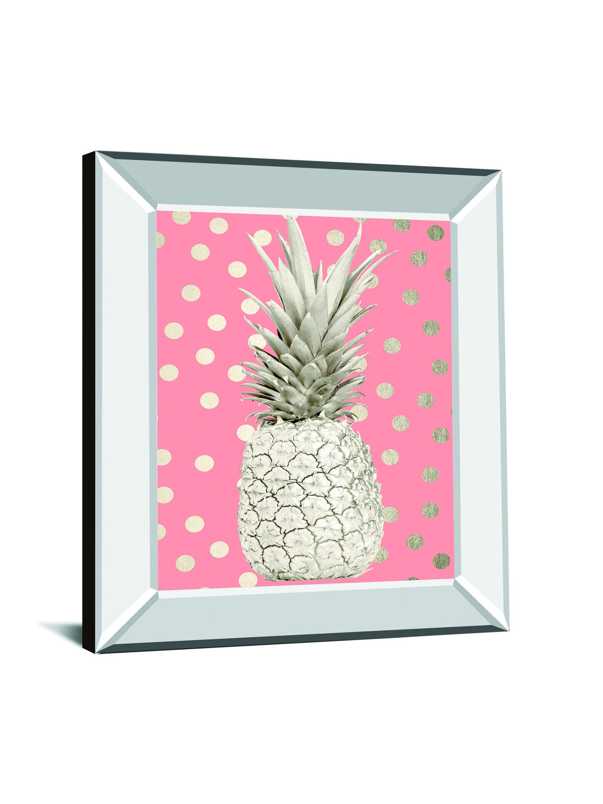 White Gold Pineapple On Polka Dots Pink By Nature Magick - Mirror Framed Print Wall Art - Pink