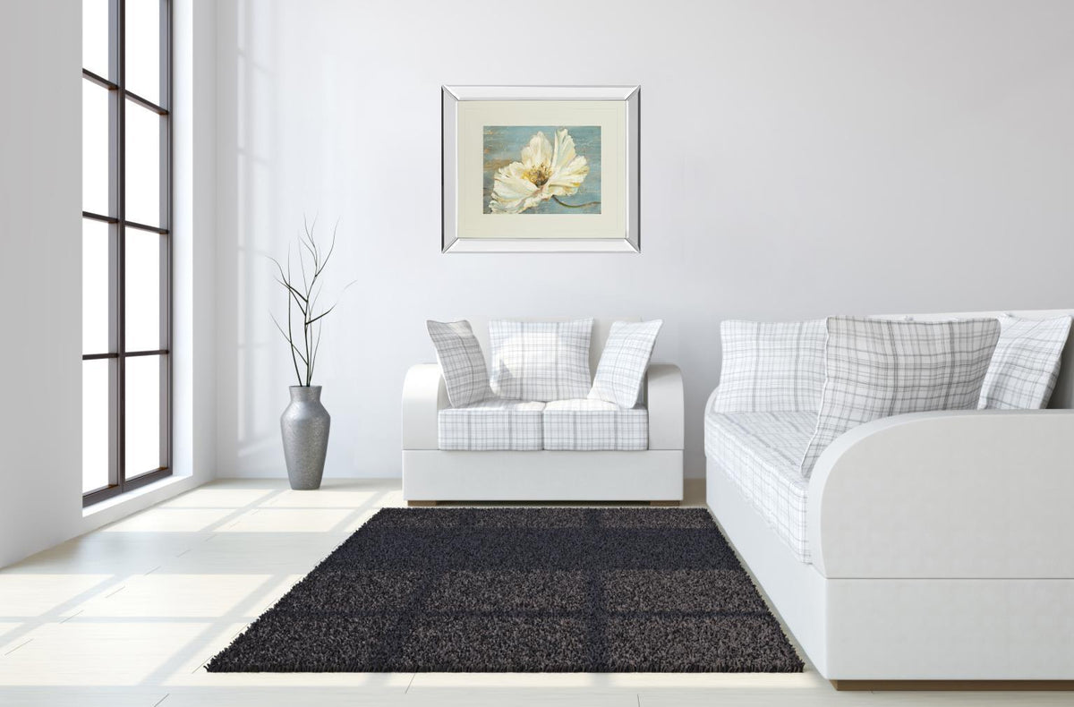White Peony By Patricia Pinto - Mirror Framed Print Wall Art - Blue