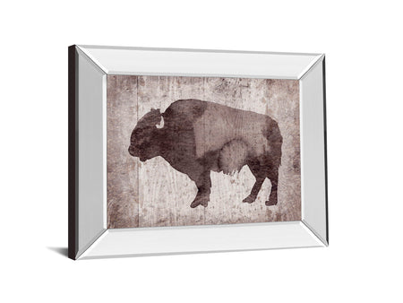 Wildness II-timber By Sandra Jacobs - Mirror Framed Bison Print Wall Art - Dark Brown