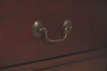 - Antiqued bronze-tone hardware