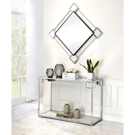 - Metal Tube Frame/Clear Glass Trim w/Cornered Mirrored Edge Accents, Chrome Finish