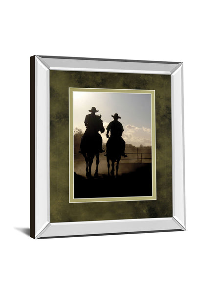 Cavaliers Cowboys By Yann Siwiak - Mirrored Framed Print Wall Art - Dark Brown