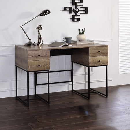 Desirre - Writing Desk With USB - Rustic Oak & Black