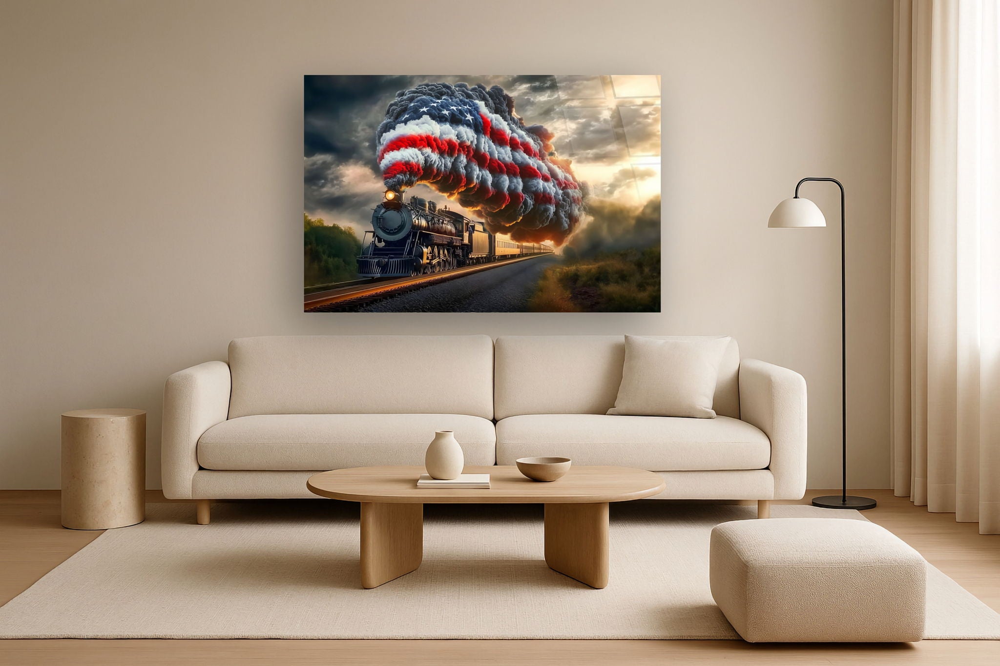 Flagburst Locomotive - 40" x 60" Framed Wall Art
