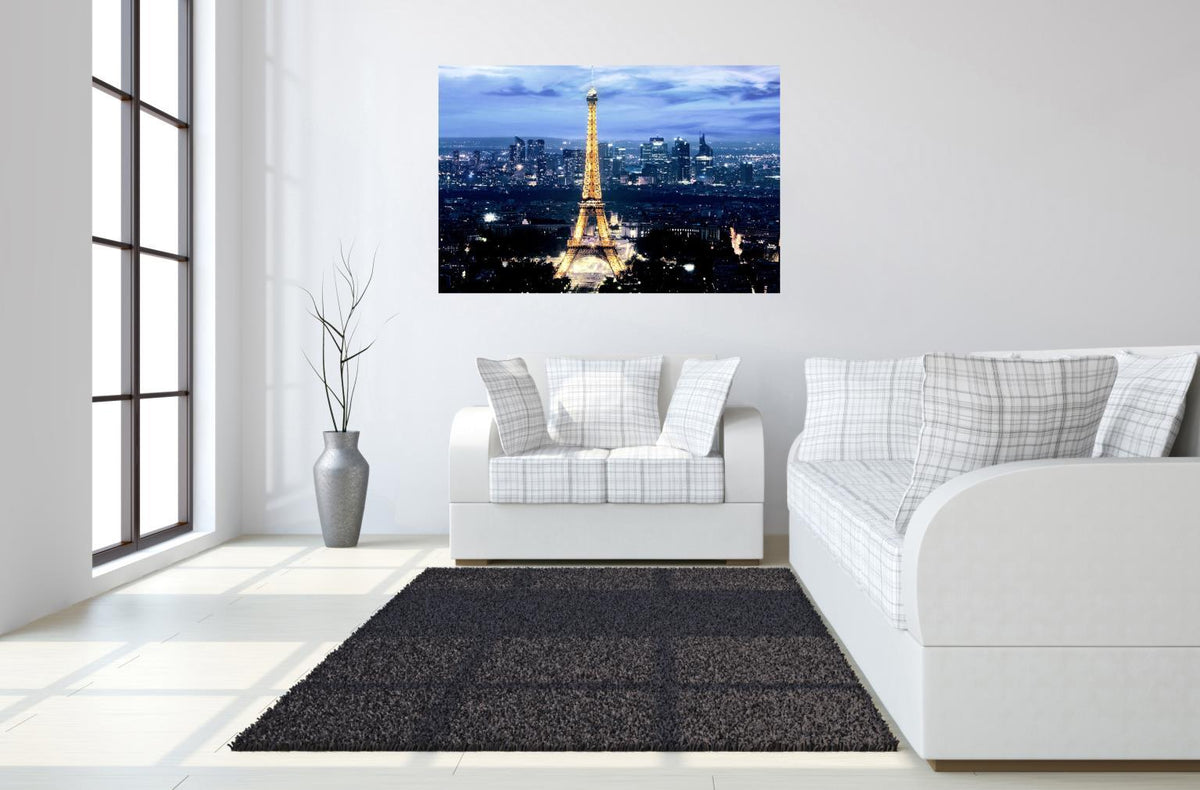 Floating Tempered Glass With Foil Eiffel Tower - Blue