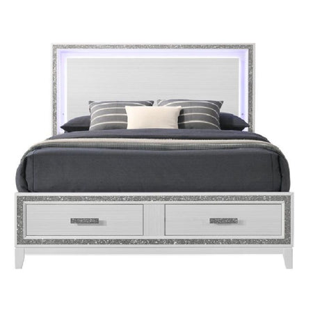 Haiden - Eastern King Bed With LED & Storage - White