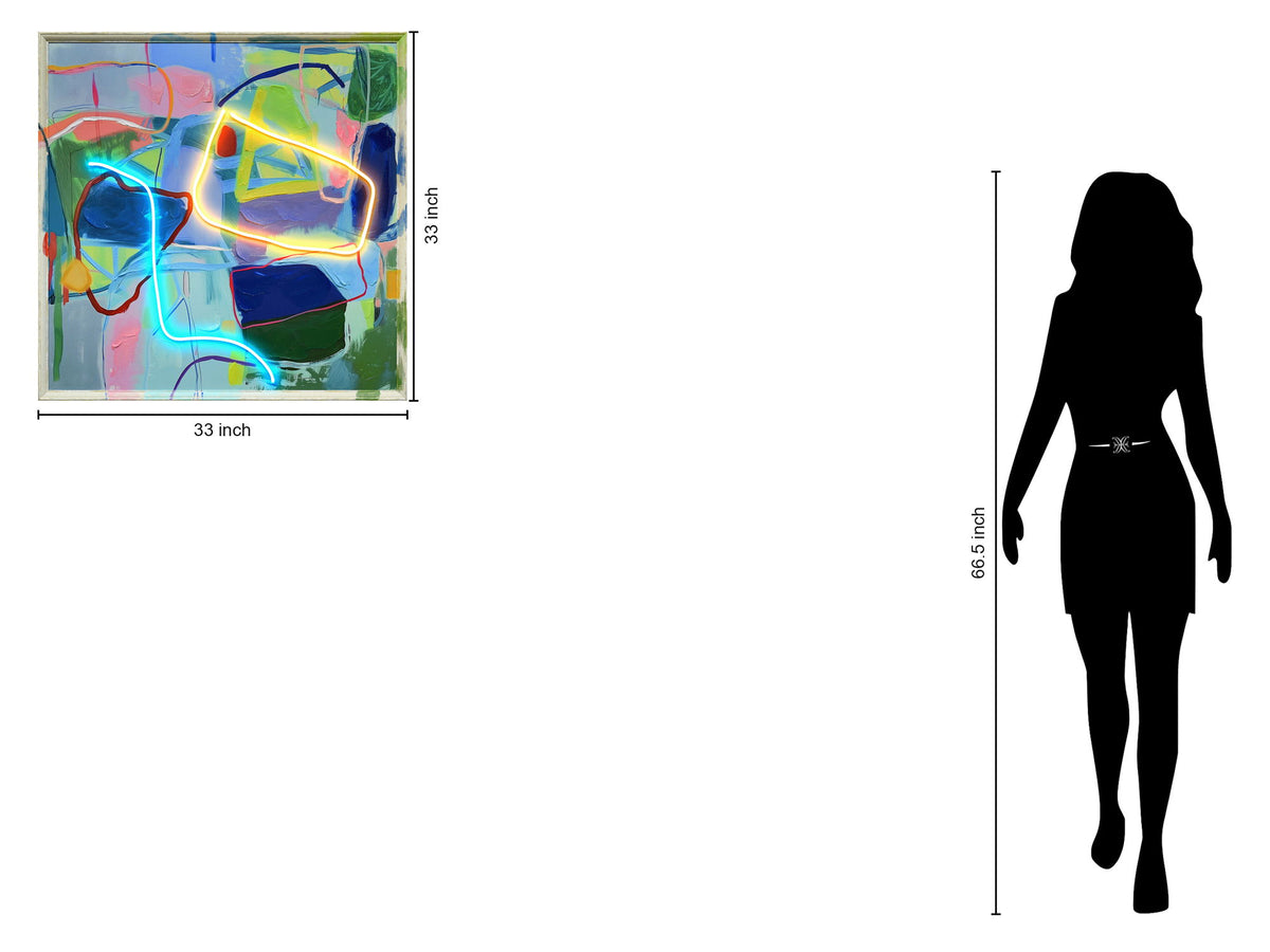 - Canvas Meets Glow - Hand-embellished artwork enhanced with vibrant neon lighting, powered by plug-in or battery for flexible display.