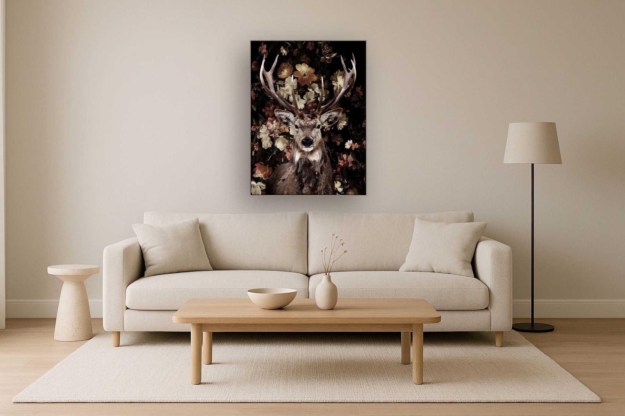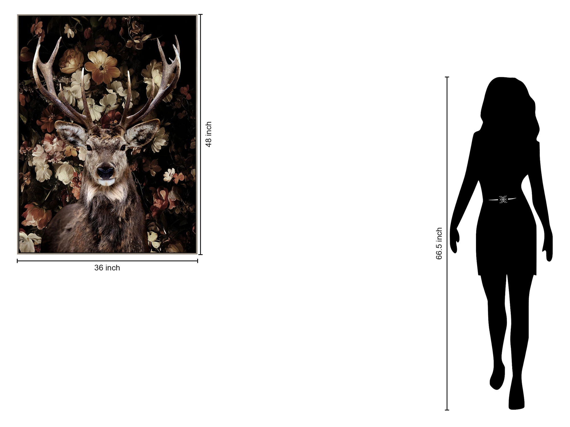 Majestic Stag Florals - 36" x 48" Framed Wall Art