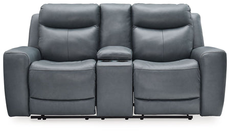 Mindanao - Power Reclining Loveseat with Console /Adj Hdrst - Steel