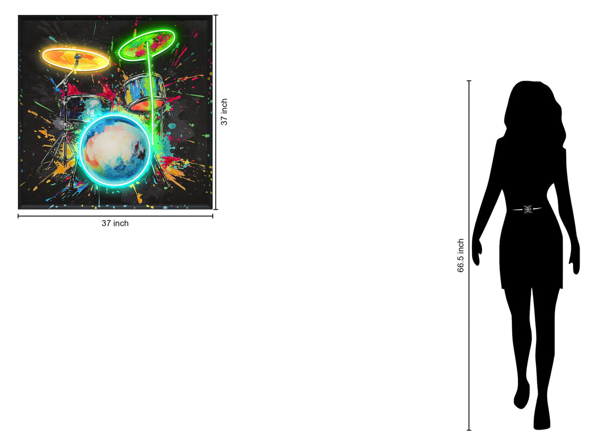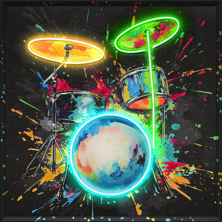 Neon Spectrum Drums - 37" x 37" Framed Wall Art