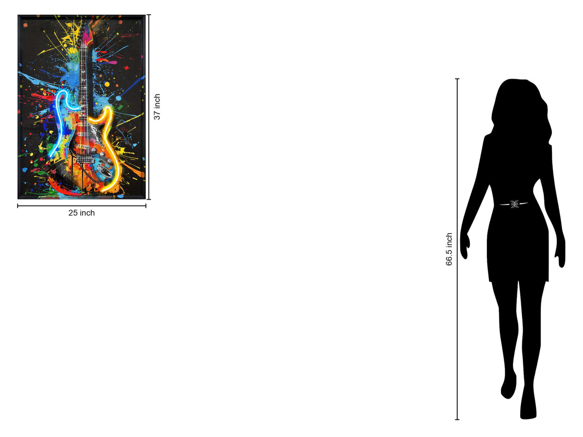 Neon Splash Guitar - 25" x 37" Framed Wall Art