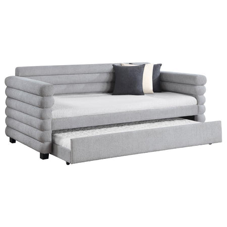 Patricia - Boucle Upholstered Twin Day Bed With Trundle - Gray