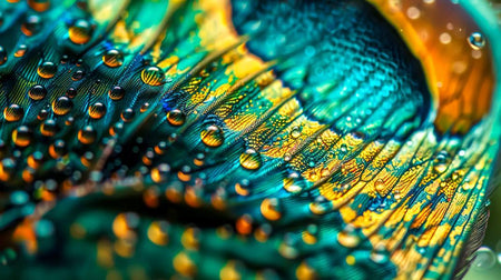 Peacock Droplets (Framed) - Blue