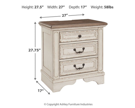 Realyn - Three Drawer Night Stand - White / Brown / Beige