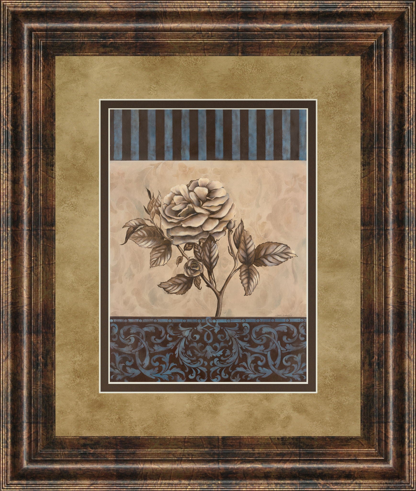 Rose Refined Il By Carol Robinson - Framed Print Wall Art - Blue