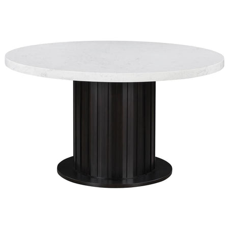 Sherry - Round Marble Top Dining Table - Rustic Espresso