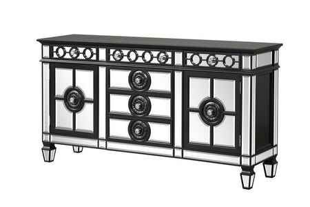 - Wooden Top & Frame, Raised Geometric Trim, Beveled-Mirror Inlay (Door/Drawer/Case)