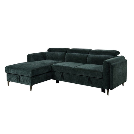 Zadok - Sectional Sofa With Sleeper & Storage - Green Chenille